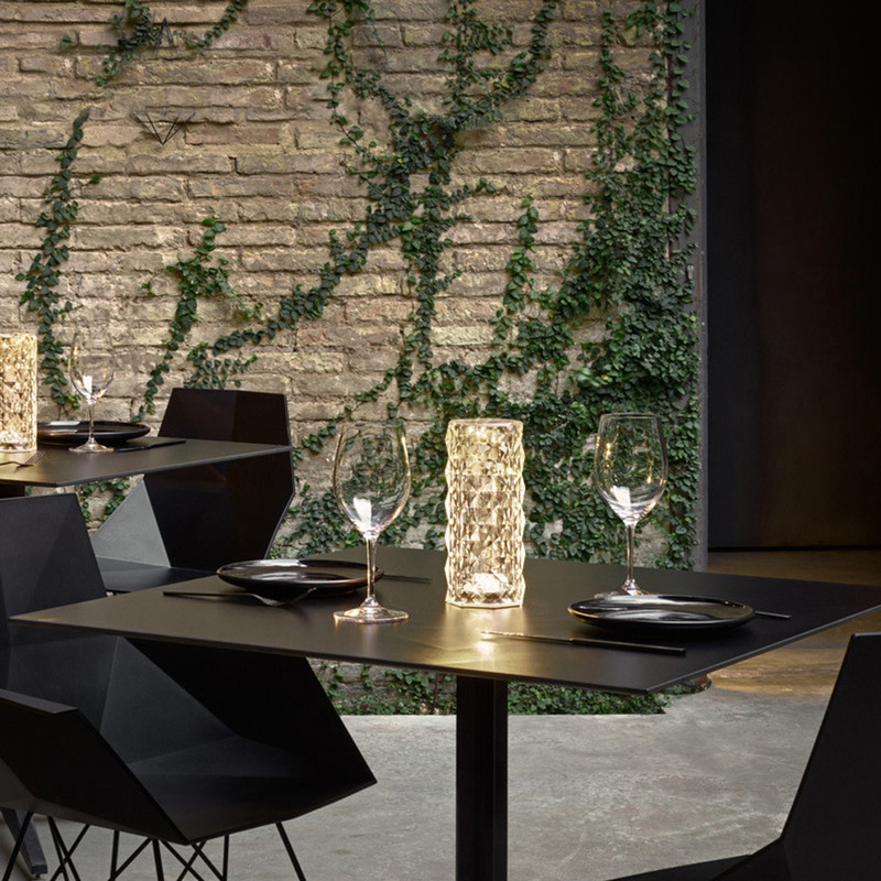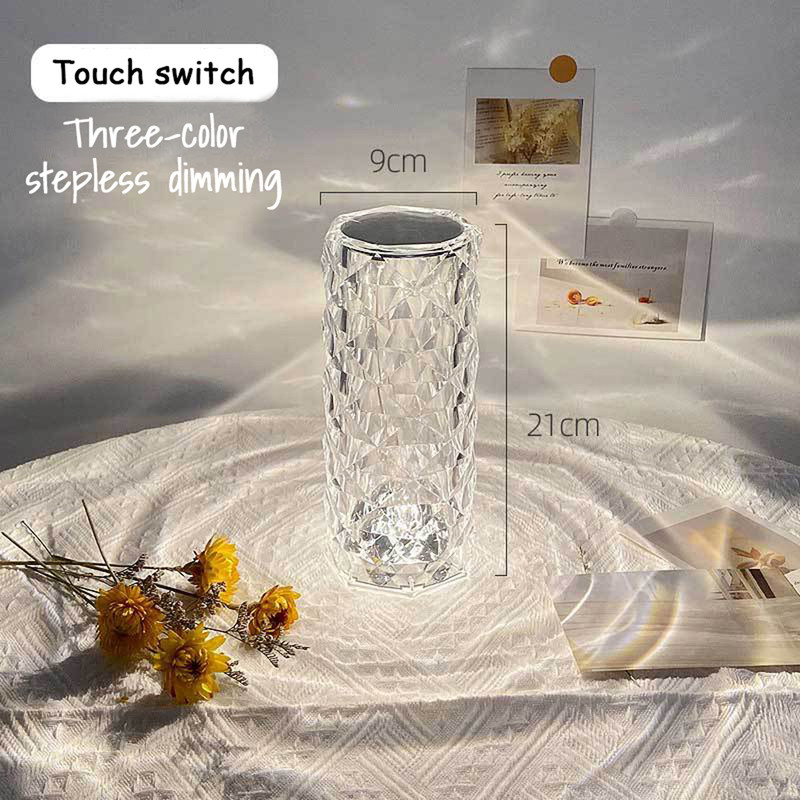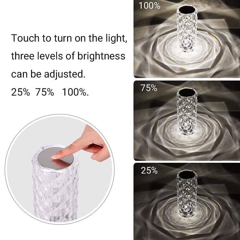 آباژور رومیزی کریستالی طرح رز، یک تجربه بینظیر از تلفیق نور و شیشه میباشد. این محصول با استفاده از فناوری سه بعدی، کاری میکند تا نور و سایه در هم تنیده شوند تا لایه های گل رز روی میز شکوفه دهند. این آباژور کریستالی با روشنایی و زیبایی ای که دارد میتواند فضایی کاملا شیک و مدرن را برای شما به ارمغان بیاورد و در تمامی مجالس و مکان ها جلوه ای ویژه از زیبایی را بوجود آورد. برای تنظیم روشنایی؛ بالای لامپ را لمس کنید. 6 سطح تنظیم از تیره تا روشن وجود دارد. شما می توانید آزادانه روشنایی نور مناسب را انتخاب کنید. رنگ روشن، زرد گرم، کهربایی، بنفش-قرمز، فیروزه ای، آبی و غیره. طراحی سوئیچ لمسی که در بالای آباژور وجود دارد میتواند به شما کمک کند تا براحتی رنگ های آباژور را تنها با لمس کردن تغییر داده و یا حتی آباژور را خاموش کنید. آباژور رومیزی کریستالی طرح رز، دارای باطری با طول عمر بالا و به راحتی با کابل USB شارژ میشود. مدت زمان شارژ کامل دستگاه از 1-3 ساعت، و مدت زمان روشن ماندن آن برای 10-12 ساعت به صورت مستمر میباشد، شارژ آباژور از طریق پورت usb بسیار راحت است و علاوه بر این محصول دارای ریموت کنترل جدا میباشد تا از فاصله ی دور نیز بتوان به صورت کامل میزان نور و رنگ و خاموش و روشن شدن آباژور را کنترل کرد.آباژور طرح رز را میتوان برای کمپینگ، مسافرت، موقعیتهای اضطراری و سایر نیازهای روشنایی نیز استفاده کرد.این چراغ برای تمامی فضاها اعم از میز کنار تخت و اتاق خواب، اتاق نشیمن، اتاق غذاخوری، اتاق مطالعه، دیزاین دکوراسیون ، اتاق های صنایع دستی، راهروها، کمدها، هتل ها، ادارات و غیره مناسب است.
